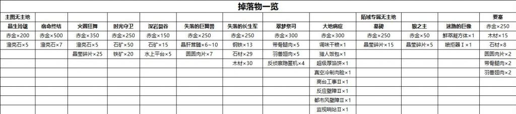 *统计了所有无主地和要塞在首通、主地图刷新、以及陌域中时的材料掉落情况,具体数字可能略有浮动,仅供参考